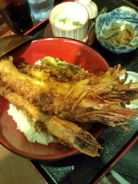 息子の頼んだ「びっくりエビ天丼」の大きさにはビックリ!(゜o゜)