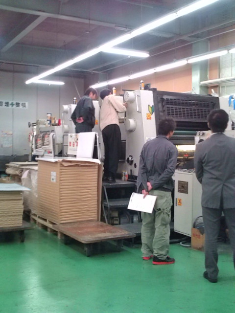 紙の段階からデザイン構成、製版、印刷、カット、仕上がりまで順を追って説明を聞いた(^^)