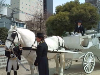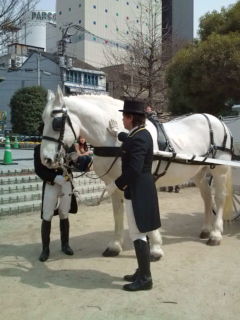 その周りを、ほんまもんの馬車が、市民を乗せてグルグル…
