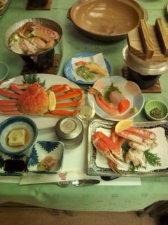 関金温泉のホテルで、蟹づくし会席&入浴…