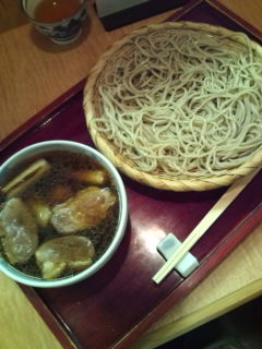 はっぴは、鴨ざるでしたが、そばは何もつけずに食べても、そばの香りがしっかりして、おいしいそばです(^o^) 分厚い鴨肉3枚と鴨団子、ネギ入りの濃い出汁のきいた、温かいつゆでいただきます…