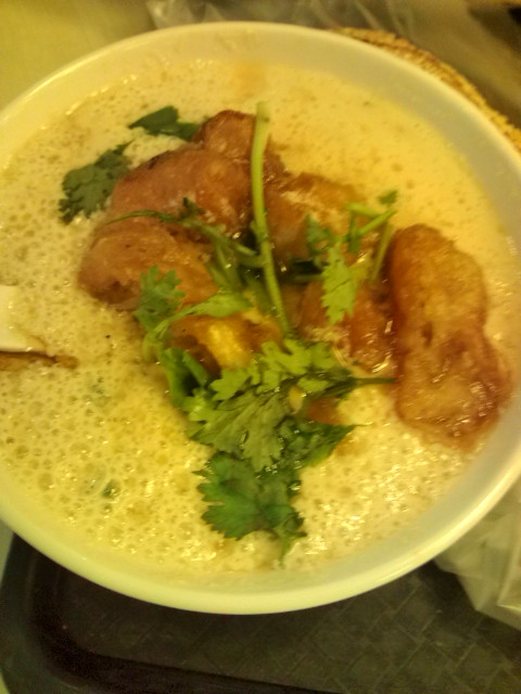 スープに豆乳をまぜ、フワフワのおぼろ豆腐のような、何とも言えないスープの中に、揚げパンが、入ってるものや…